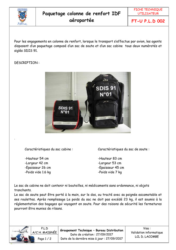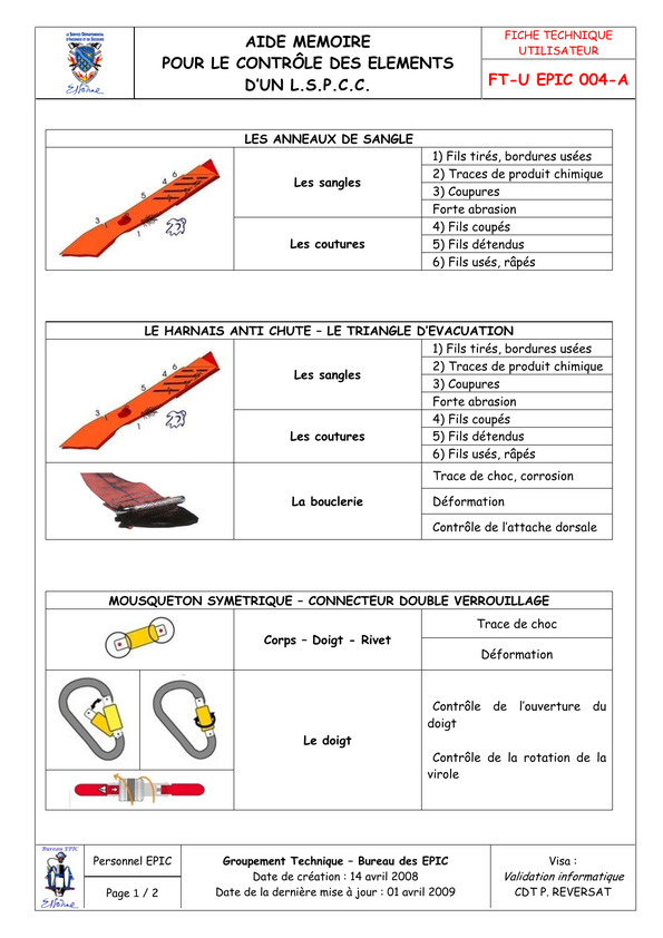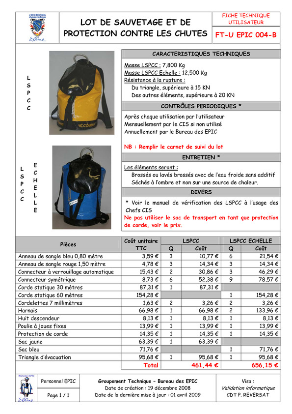 Manuel de vérification des lots de sauvetage et de protection contre les chutes à l'usage des chefs CIS