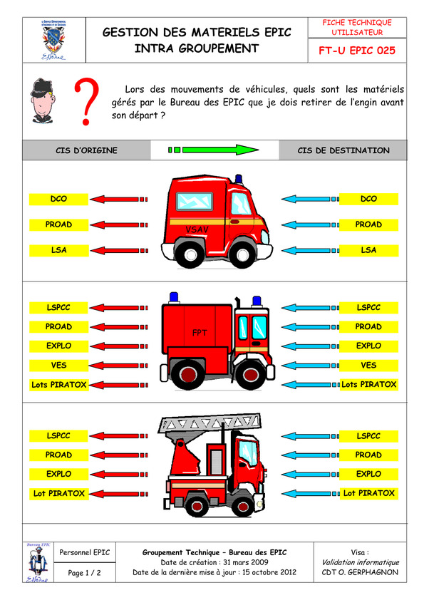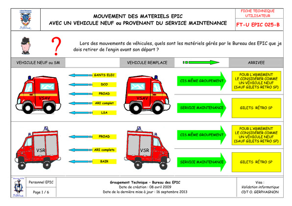Mouvement des matériels EPIC avec un véhicule neuf ou provenant du service maintenance