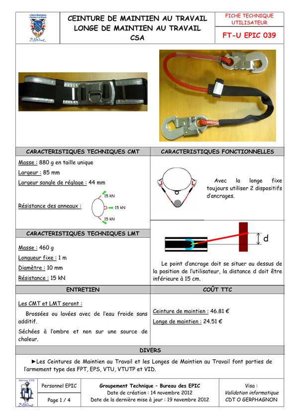 Ceinture de maintien au travail, longe de maintien au travail, CSA