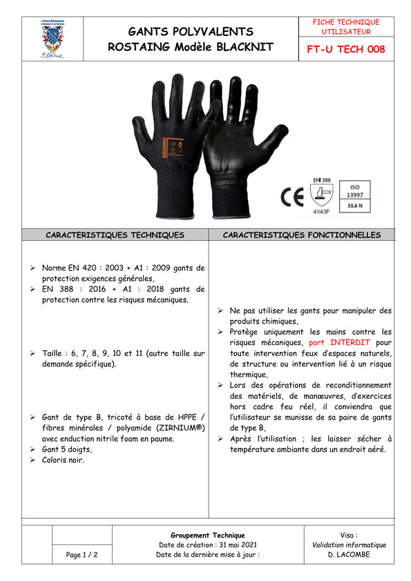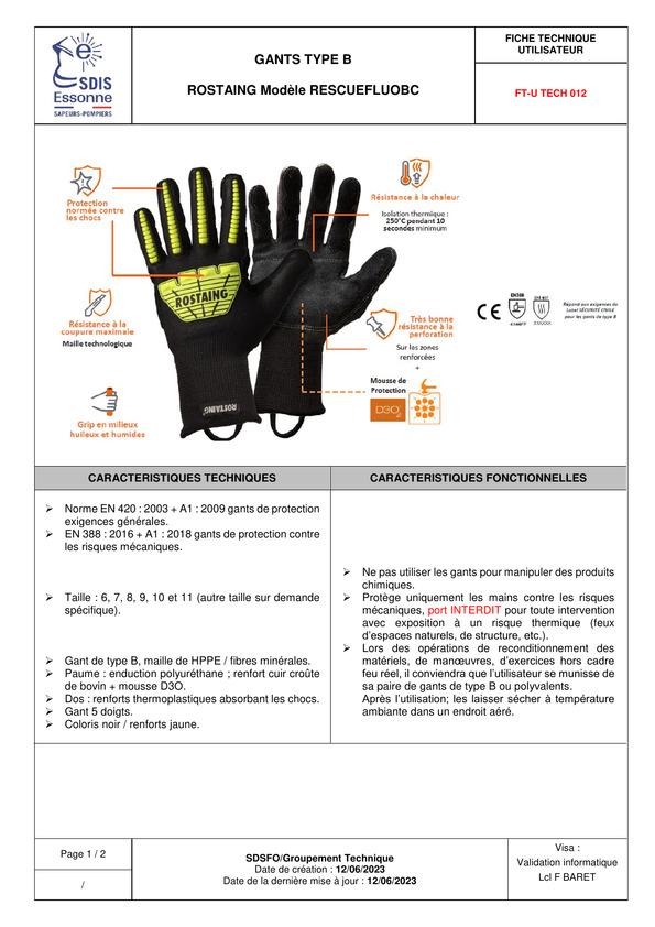 Gants type B ROSTAING (Modèle Rescue Fluo BC)