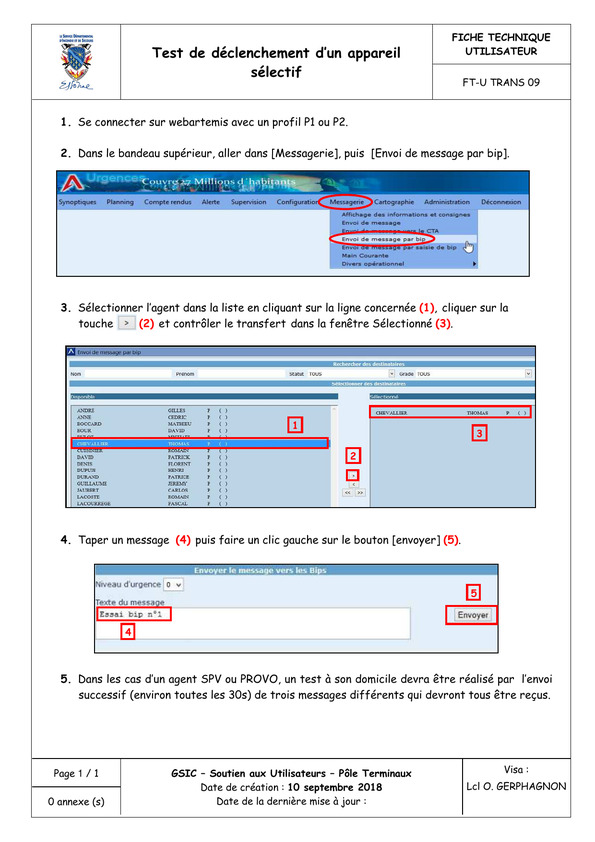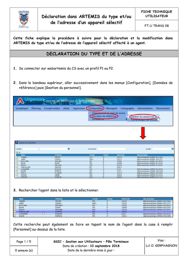 Déclaration dans ARTEMIS du type et/ou de l'adresse d'un appareilsélectif