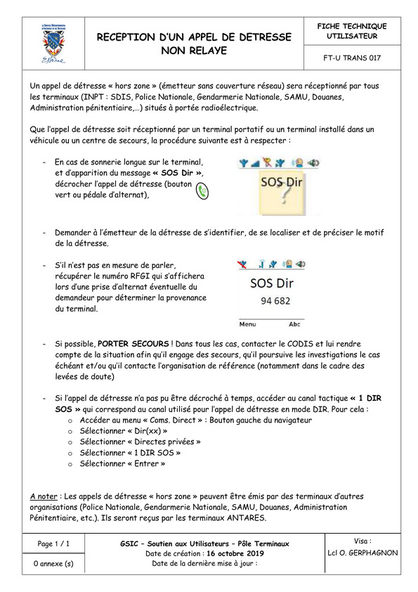 Réception au CTO/CODIS d'un appel de détresse non relayé