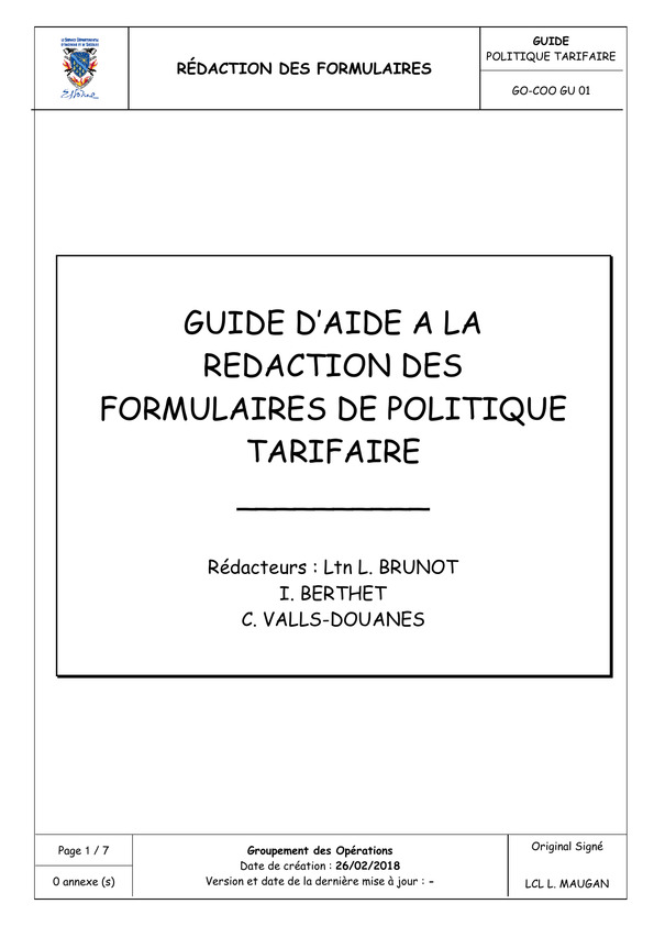Guide d'aide à la rédaction des forumaires de politique tarifaire