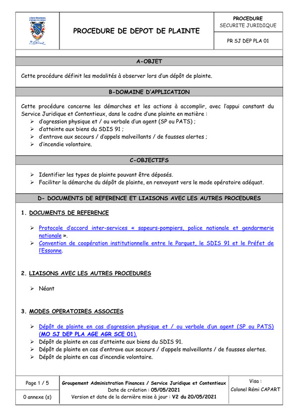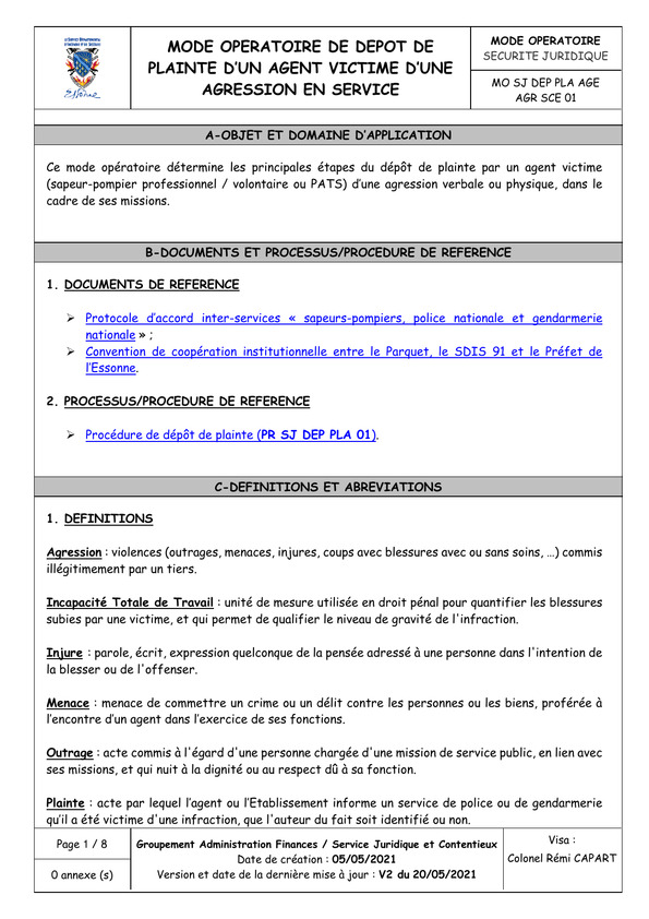 Mode opératoire de dép^$ot de plainte d'un agent victime d'une agression en service