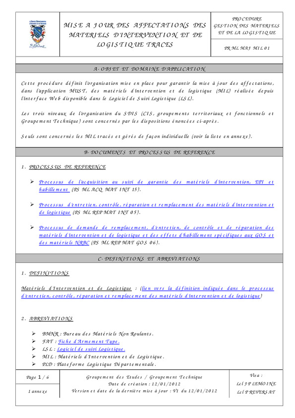 Mise à jour des affectations des matériels d'intervention et de logistique tracés